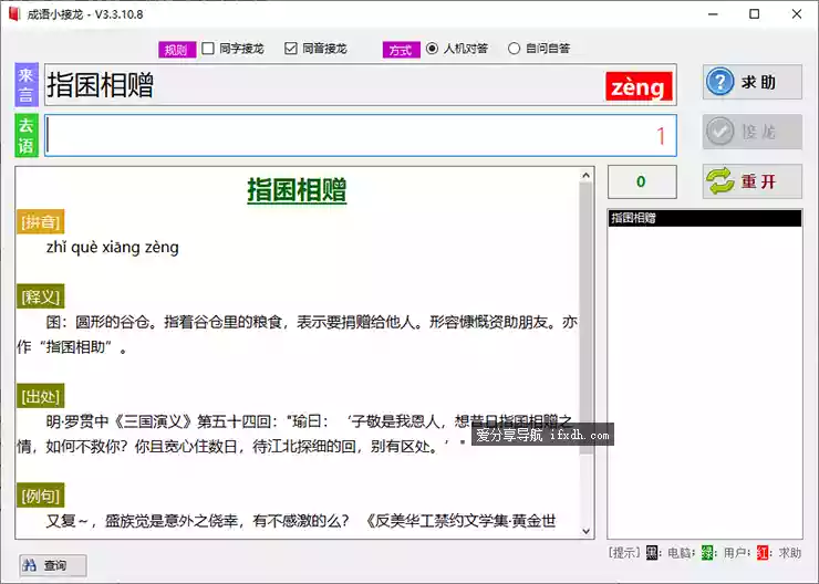 成语小接龙v3.3.10 内置5万条成语 每条都有释义 电脑 24天前 一款针对成语接龙所写的工具,它内置了5万多条成语,可自助开始成语接龙游戏,也可以对不懂的成语进行查询,总之非常有意思。普通下载:夸克网盘 | 百度网盘 | 迅雷网盘 | UC网盘高速下载:蓝奏网盘解压密码:ifxdh.com 教育 相关文章: 汉语大辞典v3.2 内置上万条成语/诗词/灯迷/对联 PHET:不用烧杯试管 也可以学各种科学实验 赞(0) 免责声明:以上网站、软件均收集于网络,其内容数据与本站点无关,其正确性、合法性、合规性本站不能保证,请读者自行甄别,如有侵权请联系删除 分享 最后更新 2025-09-06